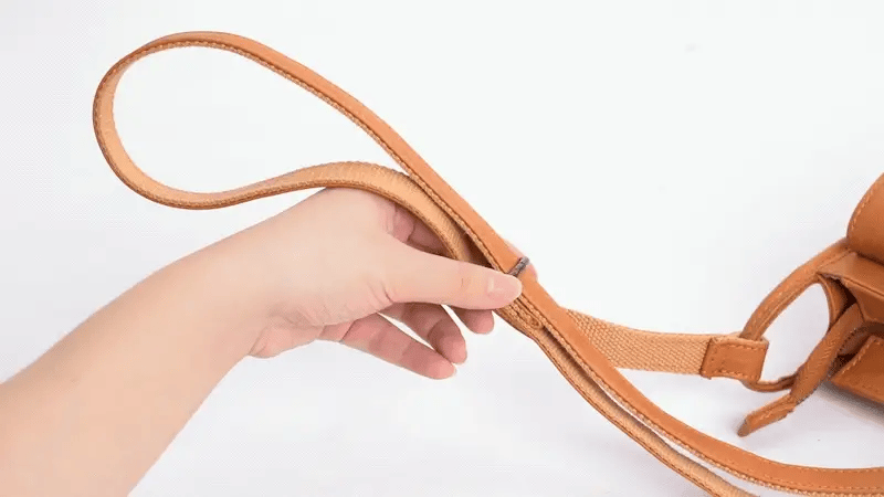 De riem heeft een leren bovenkant en een geweven onderkant, waardoor elegantie wordt gecombineerd met antislipfunctionaliteit voor meer draagcomfort en een stijlvolle uitstraling.