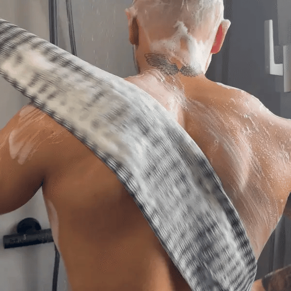 De flexibele en gezellige skinscrub™ douchehanddoek maakt het makkelijk om zelfs moeilijk bereikbare plekken zoals de rug te reinigen. Geen grote rugborstels meer die bacteriën verzamelen.